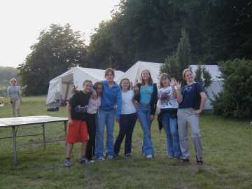 Gegen 14.50 Uhr verließen die ca. 120 Teilnehmer und Teilnehmerinnen Darmstadt und nahmen in zwei Reisebussen die Fahrt nach Blankenheim/Alendorf auf. Nach ca. 3 Stunden Fahrt kamen sie an und nahmen sofort den Platz in Beschlag. Alte Bekanntschaften fanden sich wieder, neue wurden geknüpft. In 15 hellen Zelten wurde eingezogen, den Fussboden mit Planen ausgelegt und nach dem Abendessen und dem Begrüßungsabend tot müde ins Bett gefallen.