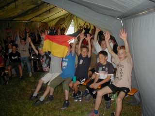 Deutschland im WM-Fieber !! Das gilt auch für die Teilnehmer im Zeltlager 2002. Der Morgen wurde durch eine Morgenwache zum Thema Cool sein ohne Gewalt gestalten, aber nach dem Mittagessen stand nur noch die WM auf dem Programm - bis zum Kaffeetrinken mit Kuchen.