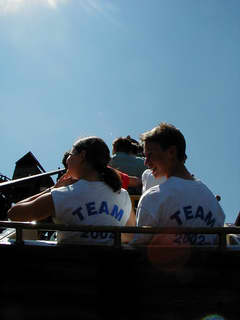 Endlich Sonne ! Ein Tag Sommer nach vielen wechselhaften Tagen. Und diese Zeit wurde genutzt um den Tagesausflug ins Phantasialand bei Brühl zu machen. Ein Tag Action pur : "Ich bin 11 mal den Freefalltower und 9 mal die Fear&Force im Wuzeland gefahren", berichtete ein Teilnehmer stolz. Auf der Rückfahrt hat der halbe Bus geschlafen und sich von dem Freizeitstress ausgeruht. In der Nacht hat die Gruppe ein Gruselpacour im näheren Umfeld des Zeltplatzes erwartet. | ||||||||||