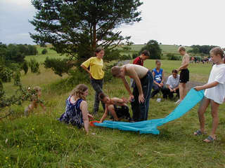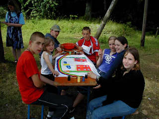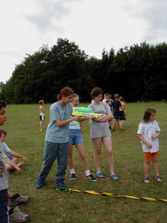 Morgens Luftschlösser gebaut und mittags beendet der Regen die Wasserolympiade. Mit Sätzen aus Märchen bekamen die Spieler Informationen für den Bauplan eines noch zu malenden Schlosses. Viele Ideen der Zeichner und Architekten flossen in das kreative Merkspiel zusätzlich noch ein. Die Wasserolympiade Spaß mit Nass wurde fast bis zu Ende gespielt als die Wärmegewitter einsetzten. | ||||||||