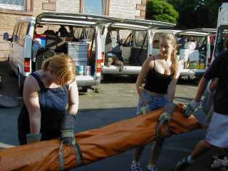 Nun, schon am Dienstag wurde im Lager des JRK - Darmstadt fleißig das Lager ausgeräumt und die LKW beladen. Viele Zelte, Küchenmaterial und Programmmaterialien müssen nach Alendorf, um ein reibungsloses Zeltlager zu garaniteren.