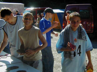 Der erste Tag auf dem Platz. Sonne, Strand und mehr,... Kennen lernen war angesagt und unsere Teilnehmer mussten ne menge witzige und verrückte Kennenlernspiele mitmachen. Nun aber nun ist man sich etwas näher gekommen, die Namen kennt man schon. Mittags ging es bei Sonnenschein ab ins Gelände. Erkundung mit Schnipseljagd stand auf dem Programm. Drei Fährten wurden gelegt und ab ging es in drei Himmelsrichtungen. Nur bei Gregor und Ricci ging es etwas schnell. Die ersten waren nach 20 Minuten weder zurück. Ja, wenn man ins Alter kommt ! Der Abend schloss mit dem ersten Lagerfeuerabend und den ersten Zeltpreisen zum anwärmen !