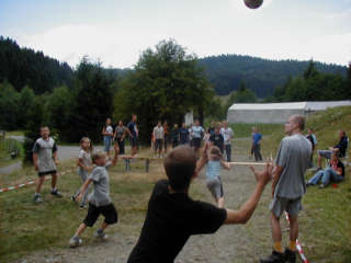 Sporttag Bei leicht wechselhaftem Wetter war heute der traditionelle Sporttag, bei dem die Teilnehmer ihr können im Mannschaftssport unter beweiß stellen konnten. Meisterorganisatoren Alex und Martin hatten mit ihrem Team alles unter Kontrolle: Bis zu den Finalspielen morgen, konnten sich alle in den Vorrunden qualifizieren: Seilspringen, Am Abend gab es Lagerfeuer mit Meckerrunde, Musik und einer Gruselgeschichte. Anschließend startet der Geisterwanderung.