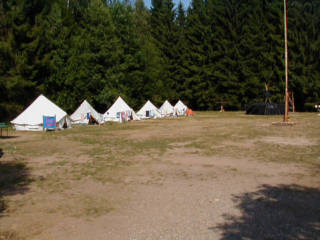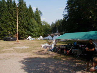 Die Schule war kaum um und bald soll es los gehen... Die Sachen sind gepackt und verstaut. Am Treffpunkt angekommen musste die Gruppe aber erst einmal auf den Bus warten, der fast eine Stunde Verspätung hatte. Nach einer etwas längeren Anreise (etwas Stau durch den Beginn der Sommerferien in Hessen und der Pfalz) kamen die beiden Reisebusse mit gut 140 Kindern wohlbehalten im Zeltlager in Bernau an. Hier warteten schon die aufgebauten Zelte und Feldbetten auf ihre neuen Bewohner. Nach der Zelteinteilung und einem Rundgang über den Platz wurden die ersten lebenswichtigen Fragen geklärt (Wo ist denn das Klo? Wann macht das Kiosk auf?) und es gab das eine oder andere Wiederseh'n mit Freunden aus den vergangenen Jahren.