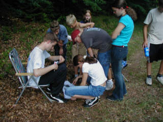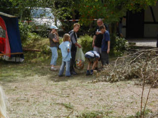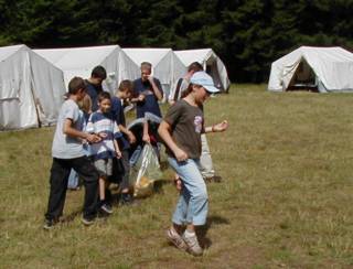Kapital gegen Umwelt An dem trockenen heutigen Montag stand für die Teilnehmer eine Umsetzung des Spieles Monopoly vormittags auf dem Programm. Im Wald konnte an Stationen das Kapital für den Kauf von Straßen und den Bau von Gebäuden erwirtschaftet werden. Zwischen Badstrasse und Schlossallee gab es einiges an Bauaktivitäten. Nachmittags wurde der Augenmerk auf die Umwelt gelenkt. Eine Rallye mit vielen Standorten, die sich mit Tieren, Blättern, etc... auseinandersetzten. Nicht nur Wissen sondern auch Kreativität und Geschick führte dann eine Gruppe zum Sieg. Endlich konnte auch am Abend der erste ersehnte Lagerfeuerabend mit Gruselgeschichte und Meckerecke stattfinden.