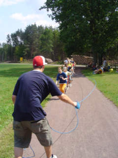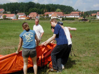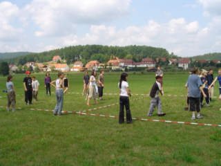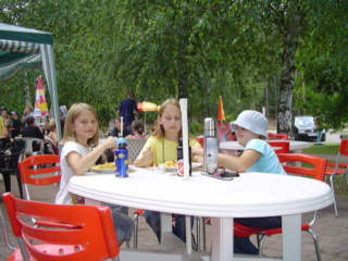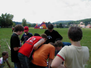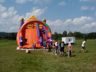 Anmarsch |  Die Spassrutsche |  |  |  ein anstrengender Abbau (500kg) |  Völkerball |  |  Minigolf |  endlich Pause |  Ropeskipping |  und stimmt das Ergebniss |  ....... soooo heiß |  und sooooo gesund |  naja, doch noch eine Portion Pommes als Ausgleich |  Chillout Disco |  |  und dann Nachtwache |