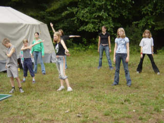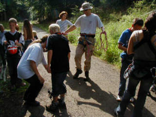 Der zweite Projekttag wurde durch ein Highlight begleitet. Die Bereitschaft der Bergwacht Darmstadt besuchte das Lager und bot ein Kletterprojekt an. Viele andere Aktivitäten standen aber auch noch zur Auswahl