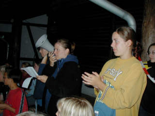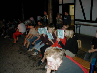 Abends wurde am Lagerfeuer noch mal gesungen, die Fundsachenkiste aufgeteilt und diel letzten Preise verteilt. Heinz beendete das Lagerprogramm mit der klassischen Gespenstergeschichte.