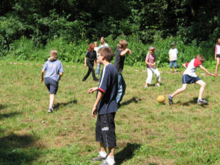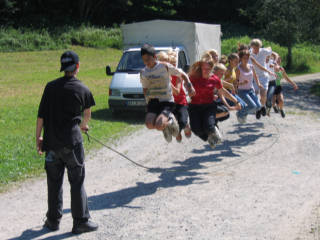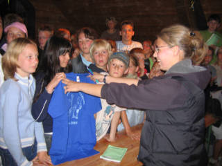 Der Countdown zu den begehrten Shirts hat begonnen. Über den Tag hinweg konnten die Teilnehmer in den Gruppen noch Punkte sammeln um auf die begehrten T-Shirts hinzuarbeiten. Vormittags und Nachmittags gab es den Sporttag. Auf vier Feldern wurde viel von den Teilnehmerinnen und Teilnehmern abverlangt: Völkerball, Volleyball, Seilspringen und als Pausestation die Spaßrutsche. Nach dem Abendessen stand noch ein Teamer-Teilnehmer-Volleyball-Spiel spontan auf dem Programm. (Leider müssen die Teamer bei der Revanche noch etwas üben :-) ) Der Abend endete früher mit dem Lagerfeuer als gewöhnlich, da es morgen früh raus geht um die Tagesfahrt nach Rust (Europapark) anzutreten. Am Lagerfeuer wurden die noch ausstehenden Siegerehrungen durchgeführt und die Gesamtpreisverleihung der T-Shirts vorgenommen