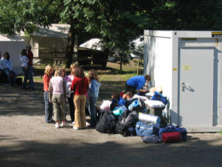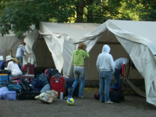 Packen, Abbau und Heimreise Die letzen Stunden auf der Adelmühle sind von dem Packen der Koffer, dem Aufräumen des Platzes und dem Abbau der Zelte gepägt. Jetzt müssen alle anpacken. Ein Teil der Teilnehmer ist zum Entladen der LKWs nach Darmstadt vorgefahren. Nach der langen Busfahrt sind die Teilnehmer am frühen Abend in Groß-Gerau und Darmstadt angekommen. Mit Abschiedstränen und einem letzten "Winkewinke" verabschiedeten sich die Teilnehmer und viele freuen sich schon auf das kommende Jahr, das wieder in die Eifel nach Alendorf gehen wird.