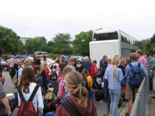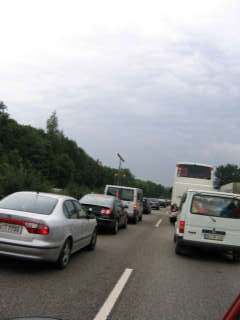 Anreise im Stau - Ankunft um 23.30 Uhr in Horgenzell Um ca. 23.30 Uhr kam die Gruppe aus Darmstadt und Groß-Gerau gespannt und etwas müde auf dem Zeltplatz Adelmühle an. Nach der Zelteinteilung und einem kurzen Abendessen ging es dann relativ schnell auf die Feldbetten und ins Reich der Träume