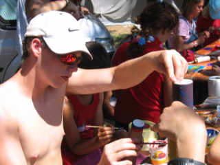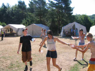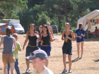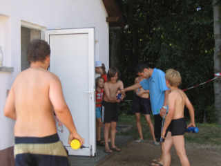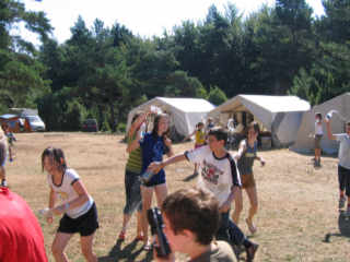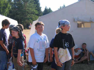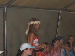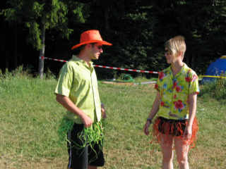 Mit gut 33 Grad Celsius war das heute wahrscheinlich der heißeste Tag im Zeltlager. Passend zum Wetter war der Crazyday zum Thema Hawaii geplant. Mit Morgengymnastik und Hula-Tanz ging es durch den Vormittag. Um die Hitze nicht unerträglich werden zu lassen war nachmittags zur Abkühlung eine Wasserolympiade mit anschließender Wasserschlacht angesagt. Abends nach dem Lagerfeuer ging es dann noch auf einen Geisterparcour durch den Wald.
