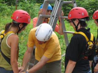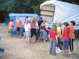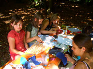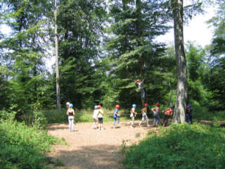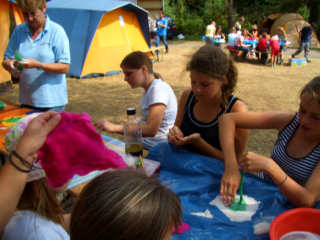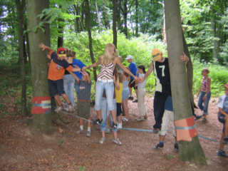 Von hohen Seilen und und weiten Wegen Der zweite Projekttag stand an. Die Teilnehmer konnten wieder zwischen vielen interessanten Projekten auswählen. Orientierungslauf, Hüttenbau, Maggitaschen, Lichterketten, Theater und ein Besuch in einem Hochseilgarten und vieles mehr stand zur Auswahl. Also war für jeden etwas dabei. Die abendliche Show mit Showmasterinnen Claudia, Marta und Miriam wurde wieder zu einem Höhepunkt. Mr. und Mrs. Zeltlager war eine gelungene Mischung aus Spiel, Spaß und Spannung.