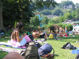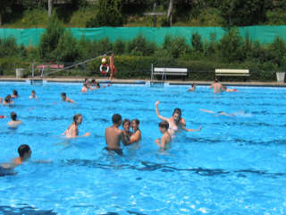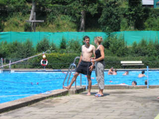 Es war Zeit ! Nach einer ca. 45-minütigen Wanderung wurde die Gruppe vom Busshuttle zum Schwimmbad aufgenommen. Nach ca 8 km Fahrt konnten sich alle im Schwimmbad in Blankenheim abkühlen und die ersten Schmutzkrusten einweichen. Der Höhepunkt des Tages war allerdings sicherlich der ersehnte Einkauf ein einem Supermarkt. Nachdem alle Vorräte aufgefrischt wurden ging es mit dem Bus zurück auf den Zeltplatz, wo das Abendessen wartete. Das Abendprogramm ging langsam an. Chilloutdisco, Film, Internetcafé und Ausleihe waren auf. Jeder konnte machen was er wollte - für jeden war etwas dabei.