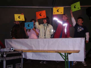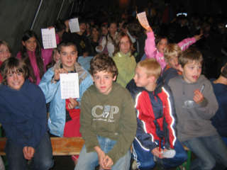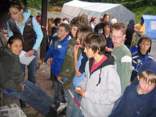 Bingooooooooooooooooo und "Land unter" Das Wetter stellt die Teamer jeden Tag vor neue Herausforderungen. Kurzfristige wetterbedingte Programmänderungen sind kein Problem. Heute wurde im Bingosaal Walter ein heisses Match gespielt. Nachmittags wurde mit "Land unter" ein Geländespiel zur Rettung von Schaafen erprobt. Die grosse Quizshow "Wer wird Millionär" und einige technische Herausforderungen beschlossen den Abend.