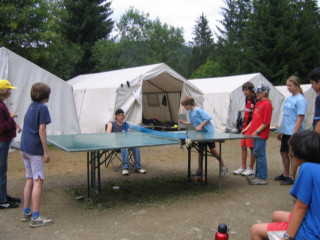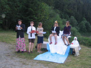 Sporttag und Stadt-Land-Fluss Der Wissensquizklassiker Stadt-Land-Fluss unterhielt die Teilnehmer heute Vormittag. Da das Wetter aufklärte war der sowieso geplante Sporttag schnell am Start. In den Disziplinen Seilhüpfen, Volleyball, WII-Tennis, Wickingerschach und Tischtennis konnten sich die 11 Mannschaften messen. Das Sommernachtsfest rundet den Abend ab und läutet langsam das Ende der Zeltlagerfreizeit ein.