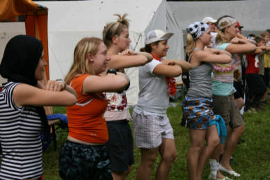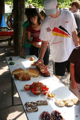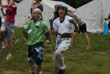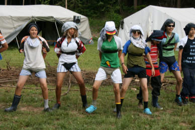 Crazy Morning und die Rettung einer Piratenbraut Etwas anders begann der heutige Tag - mit Frühsport in verrückten Outfits und bunten Kuchen. Unser Fitnesstrainer Romas heitzte der Gruppe gut ein und alle machten mit. Bewegung zu schnellen Technobeats. Die Story, die uns den Nachmittag begleitete erinnerte etwas an den "Fluch der Caribik": "Die schöne Gouverneurstochter Annabelle wurde von einer grausamen Piratenbande entführt, nachdem die Piraten den Palast ihres Vaters erobert und alle Angestellten getötet haben. Annabelle lebte nun auf dem Piratenschiff, bis sie eines Abends von der eifersüchtigen Piratenbraut getötet wurde. Noch im Tod hat Annabelle ihr Rache geschworen, nicht zuletzt auch, um sich für die verlorenen Seelen der toten Angestellten ihres Vaters zu revanchieren. Die Spieler müssen helfen, die toten Angestellten und Annabelle selbst wieder zum Leben zu erwecken. Ist dies geschehen, wird Annabelle sie reich belohnen! Zum Abend hin lud die berühmtberüchtigte Zeltlagerdisko ein. Für die jüngeren gab es ein alternatives Programm.