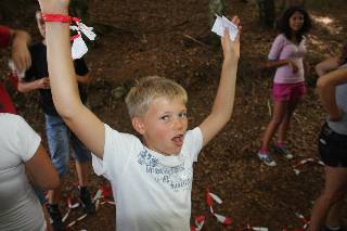 Die Teilnehmer sind Einwohner von Atlantis. Es kommt zu einem Vulkanausbruch und Atlantis droht in den Fluten zu versinken. Nun versuchen alle Bewohner, ihr ganzes Hab und Gut an einen sicheren Ort zu bringen. Doch der Weg bis dahin ist nicht einfach. Es gibt viele Gefahren, die auf die Bewohner lauern. Meeresungeheuer tauchen plötzlich aus den ansteigenden Fluten auf und bringen die Bewohner um ihren Besitz. Geht man in einer 3erGruppe, ist es leicht, diesen Ungeheuern auszuweichen. Dafür kann man nur wenige Dinge wegschaffen. Läuft man in einer großen Gruppe, kann man viele Dinge wegschaffen, ist aber ein leichtes Opfer, da man als Gruppe nicht so flink ist.