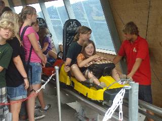 Tageswanderung und Einkauf Die diesjährige Tageswanderung geht auf das Hasenhorn bei Todnau. Als besonderes Highlight stand am Ende der 8 Kilometer langen Wanderung die Fahrt auf der Hasenhorn-Sommerrodelbahn. Die längste Sommerrodelbahn Deutschlands. Bevor die Gruppe zurück fuhr gab es endlich die Gelegenheit in einem richtigen Supermarkt einzukaufen. (Ich glaube er machte danach zu) Am Abend war mit Chillout-Disco das richtige Programm damit die erschöpften Teilnehmer sich entspannen konnten.