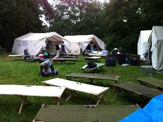 Nach ca 6 Stunden in Werpeloh angekommen Schneller als geplant kamen die gut 80 Teilnehmer aus Darmstadt, Groß-Gerau, Polen und Israel auf dem Zeltplatz an. Um 14.30 Uhr konnten wir die Teilnehmer 2011 auf dem Lagerplatz begrüßen. Nach dem Einräumen der Zelte und einem Platzrundgang bekam die Gruppe auch schon den ersten Auftrag: einen Beitrag für die Kennenlern-Show zu gestalten. Timo und Markus gestalteten den Abend mit den Teilnehmern Spät in der Nacht kamen auch die Gäste aus Israel vom Flughafen Bremen.