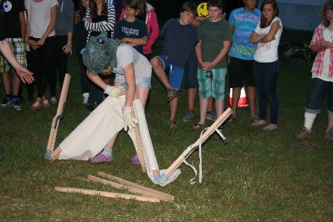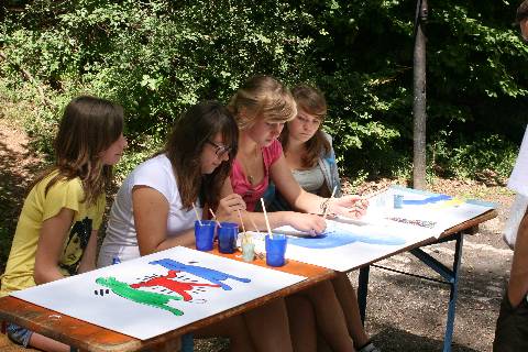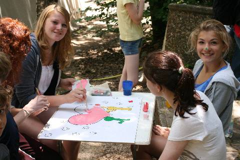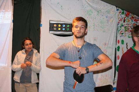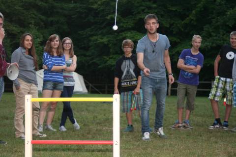 PaintArt In einem berühmten französischen Museum wurden zwei teuere und seltene Gemälde von keith haring und Picasso geklaut. Alle machen sich auf die Suche nach den Dieben. Nur die Gemälde tauchen nicht auf. Das Museum schreibt einen Wettbewerb aus um die Gemälde zu ersetzten. Unser Zeltlager machte mit - "an Stationen konnten Farben erraten werden und die Gemälde sprechen für sich", so Don Annina und Maestro Johannes. Für das Abendprogramm wurde das Teamerpaar Mirjam und Timo eingeflogen. Sie hatten im Gepäck die Show "Schlag den Jakob". Jakob musste sich den Aufgaben gegen alle Zelte stellen und die Teamehre verteidigen. Er blieb das dritte Mal in Folge ungeschlagen.